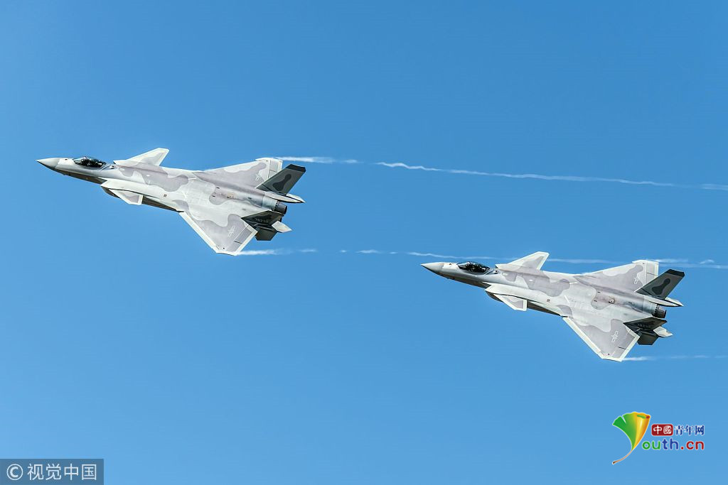 图二:2018年11月6日,广东珠海航展上,两架歼-20战机组成双机编队进行飞行表演。