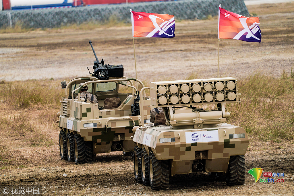 2018年11月8日,广东珠海航展上,中国兵器集团等组织地面的轮式即履带式的武器装备,进行地面多种项目动态展示。视觉中国