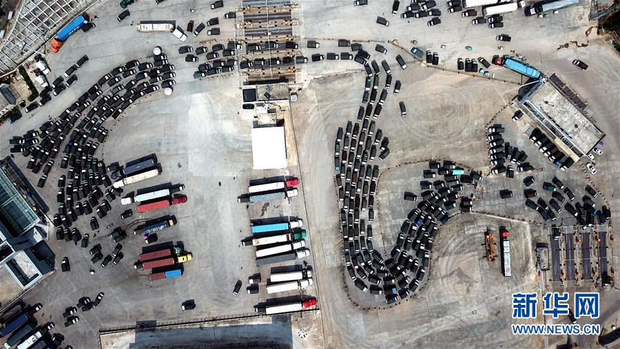 广西宁明县爱店口岸的互市车辆在进出关口(9月7日无人机拍摄)。新华社记者 张爱林 摄