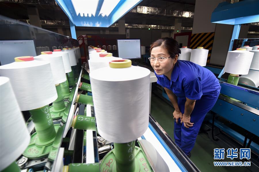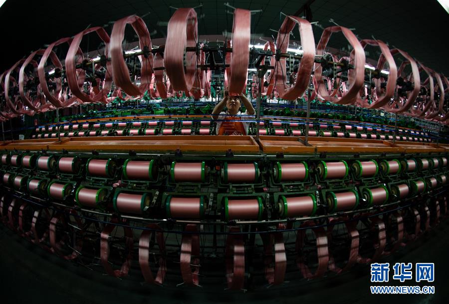 苏州市吴江区盛泽镇一家丝绸公司的工人在车间进行络丝作业(2017年5月20日摄)。 新华社记者 李响 摄