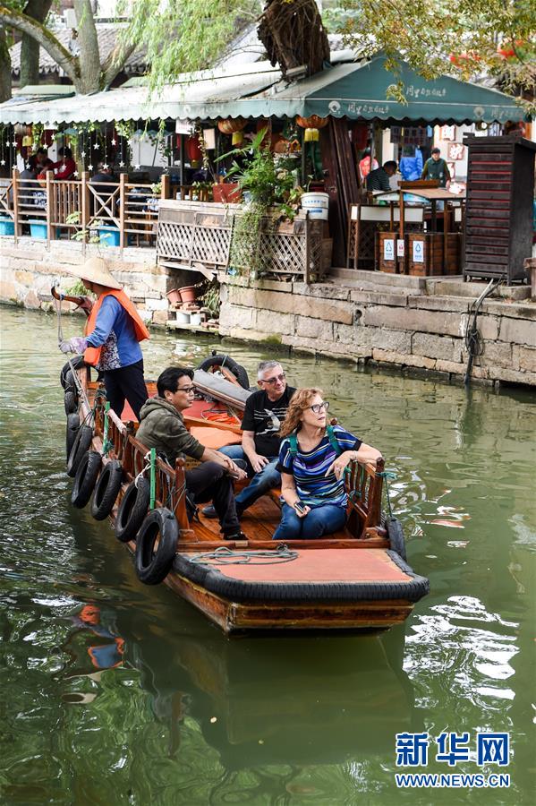 游客们在苏州市吴江区同里古镇乘船游玩(10月31日摄)。 新华社记者 李博 摄