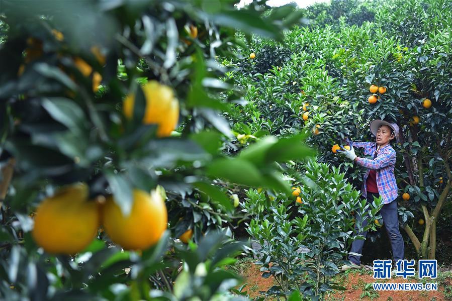 江西省寻乌县晨光镇桂花村的果农在采摘脐橙(11月10日摄)。新华社记者 万象 摄