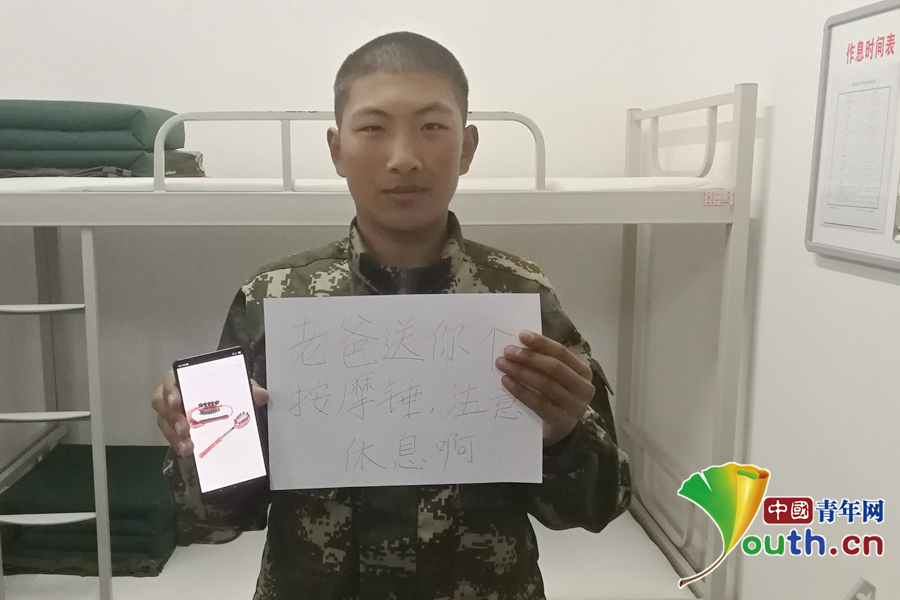 “爸爸说最近肩膀有点痛,给他买个按摩锤,工作别太辛苦,要注意休息。”武警北京总队执勤第二支队供图。