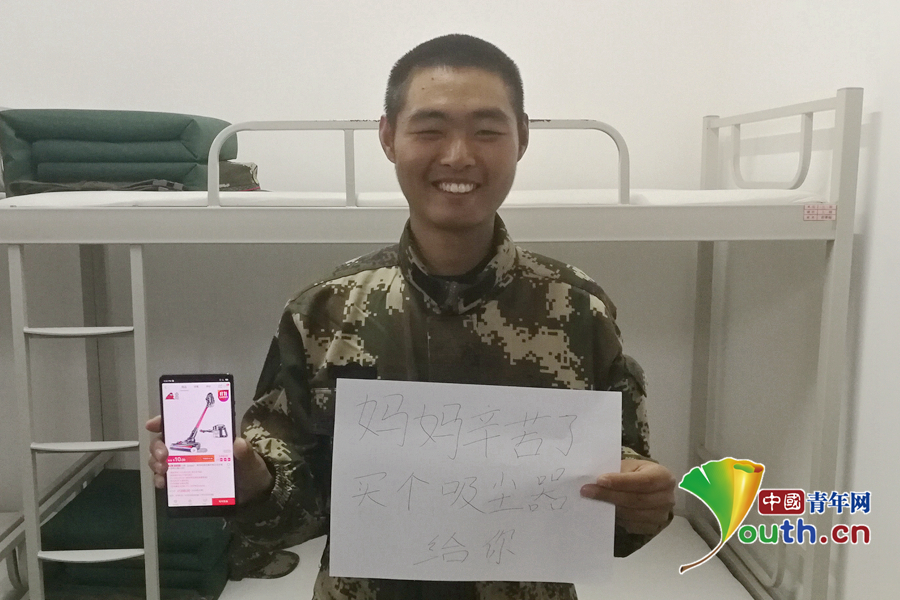 “妈妈每次打扫家务都很辛苦,买个吸尘器给她,让她干家务时能轻松点。”武警北京总队执勤第二支队供图。