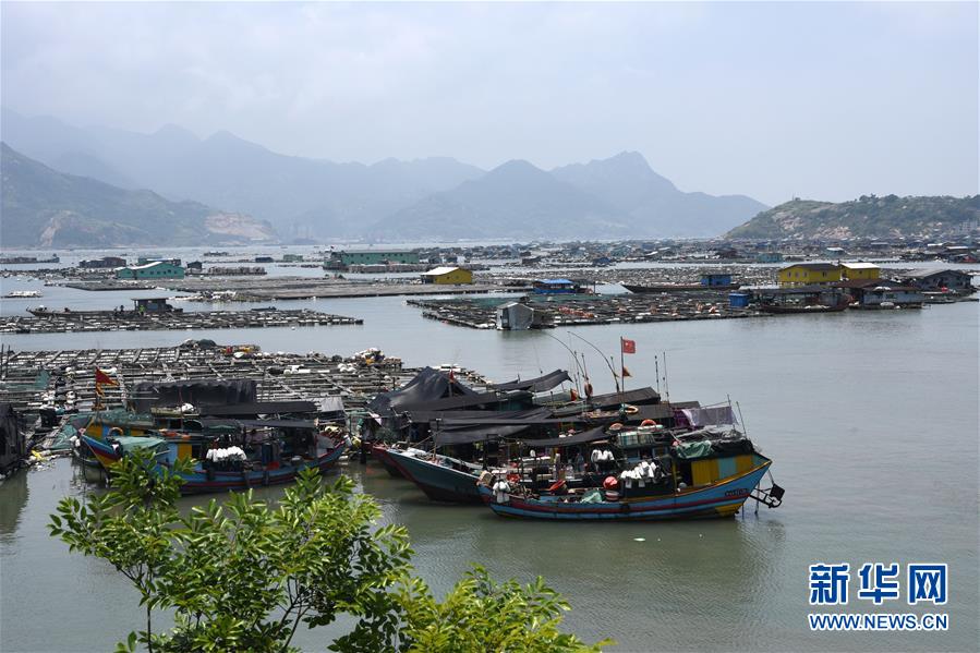 福建宁德三都澳斗姆岛附近的鱼排(5月29日摄)。