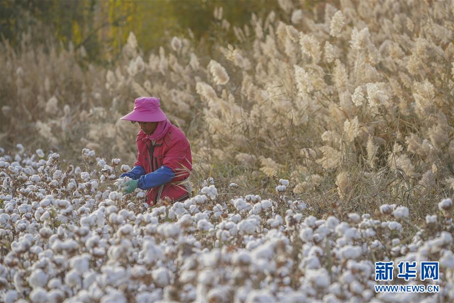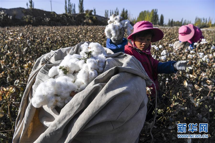 10月21日,棉农在棉田采收棉花。目前,河北省南宫市40万亩棉花迎来采收季。新华社记者朱旭东摄