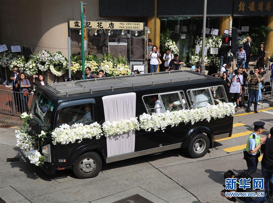 11月13日,金庸的灵车缓缓驶离殡仪馆。 当日,著名作家金庸在香港殡仪馆出殡。 金庸10月30日在香港逝世,享年94岁。 新华社记者 吴晓初 摄