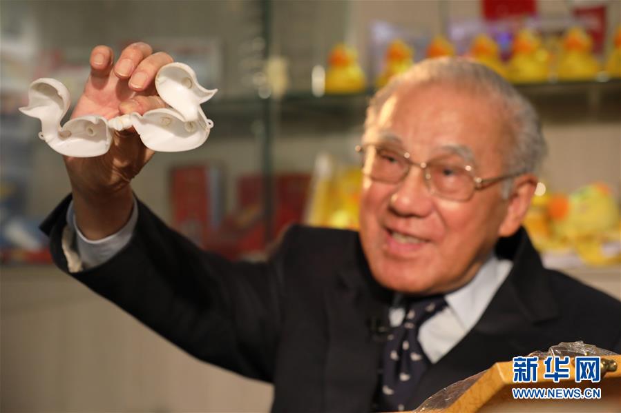林亮在展示当年生产小黄鸭的模具(10月26日摄)。