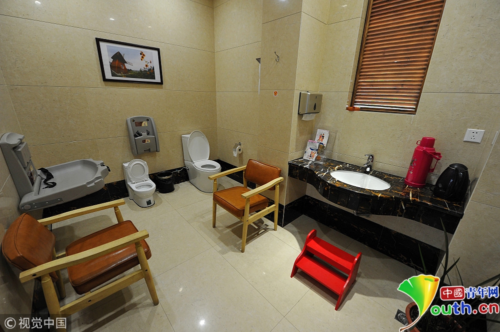 还设有第三卫生间,是专为残疾人、以及带着小孩的父母们提供的一个私密空间。免费上这样超豪华、且复古又特有文艺范儿的公厕,能让人感受到一种如“家”般的舒适,像是进了五星级酒店似的。