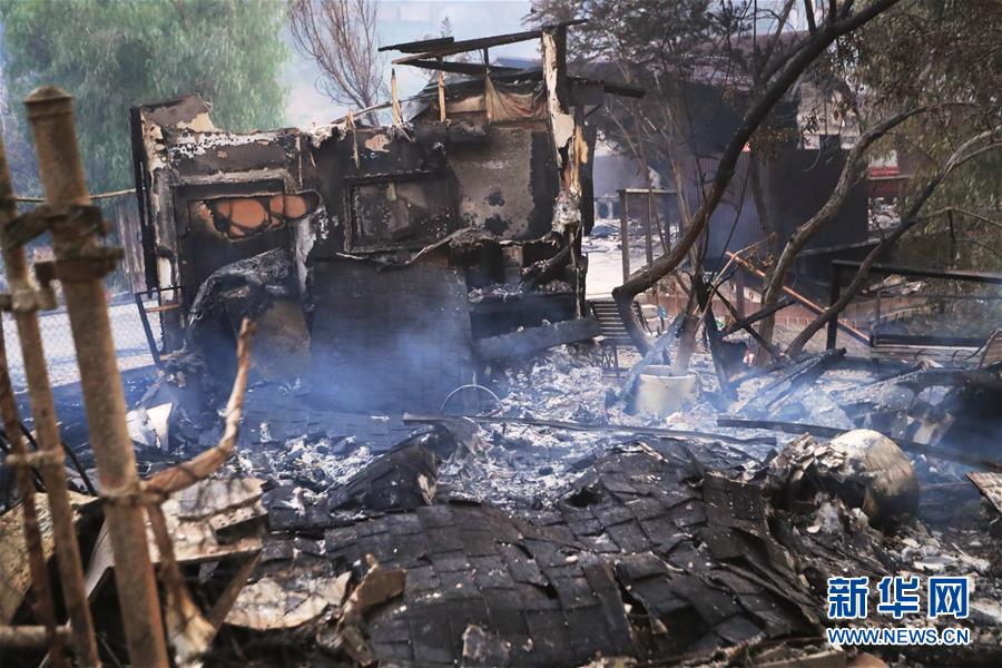 这是11月10日在美国加利福尼亚州马里布市拍摄的一处被烧毁的废墟。连日来,美国加利福尼亚州野火肆虐。 新华社记者李颖摄