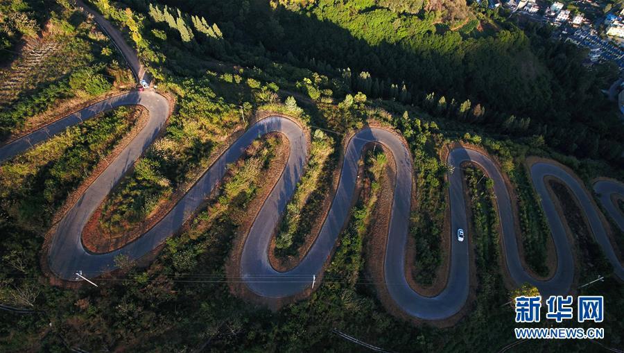云南宜良“68道拐”位于云南省昆明市宜良县,是宜良县城通往靖安哨村的盘山公路。公路依山梁而修建,蜿蜒曲折,6.3公里的路程共有68道弯。新华社记者 杨牧源 摄
