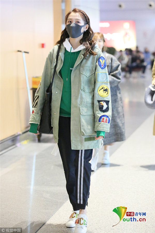 关晓彤穿男友风外套酷中带甜 摘口罩露清纯美貌