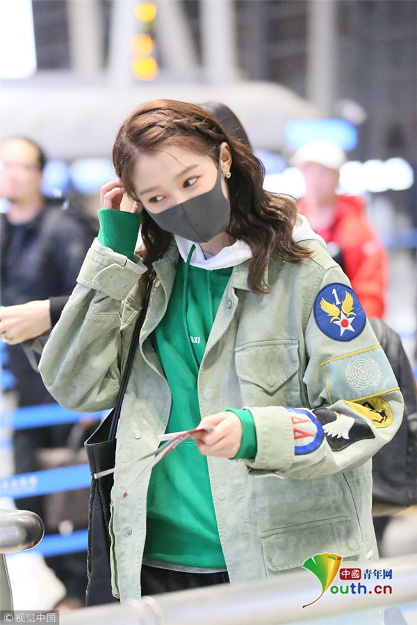 关晓彤穿男友风外套酷中带甜 摘口罩露清纯美貌