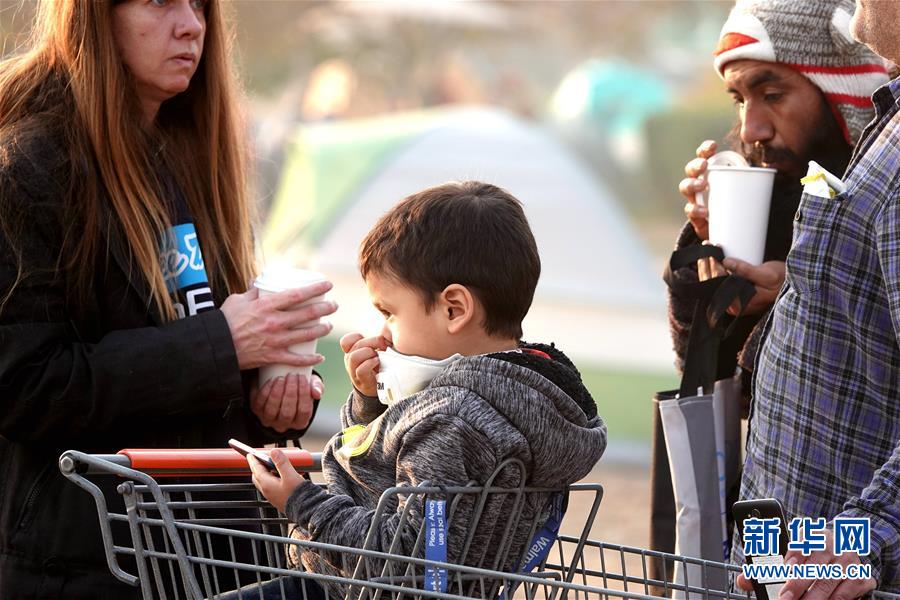 11月18日,在美国加利福尼亚州比尤特县奇科,灾民在沃尔玛停车场暂居。 新华社记者吴晓凌摄