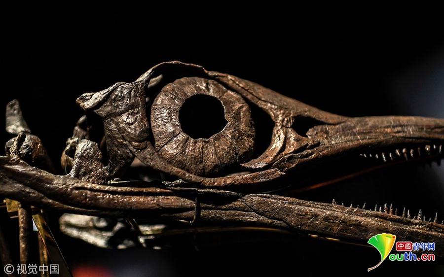 当地时间2018年11月19日,法国巴黎,在展出中的1.8亿年前侏罗纪时期的恐龙骨架,将于11月20日在Drouot拍卖行拍卖。