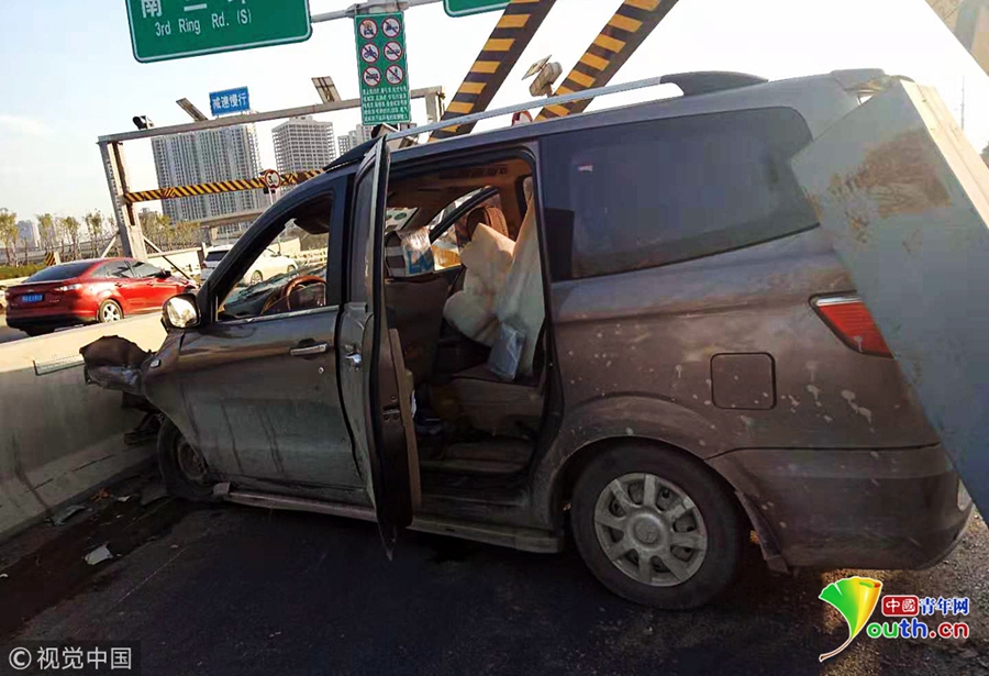 快速路司机开车“走神” 眨眼撞塌限 ...