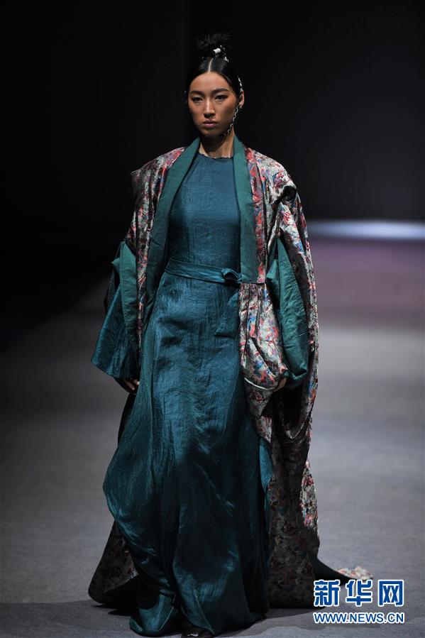 模特在AJ-NAMO藏装秀上展示藏族设计师阿佳娜姆设计的时装(11月18日摄)。
