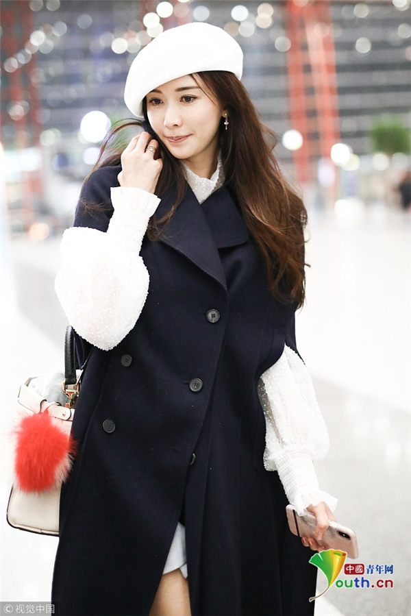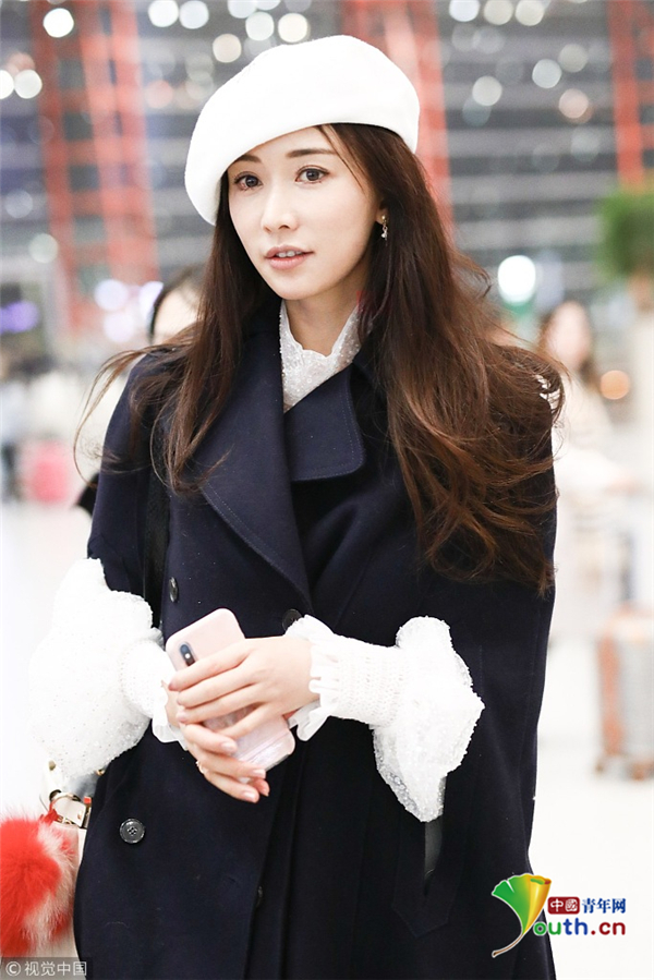 11月19日,北京,林志玲现身机场,林志玲穿黑色大衣配贝雷帽温暖俏皮,挥手卖萌露修长美腿女神气质爆棚。