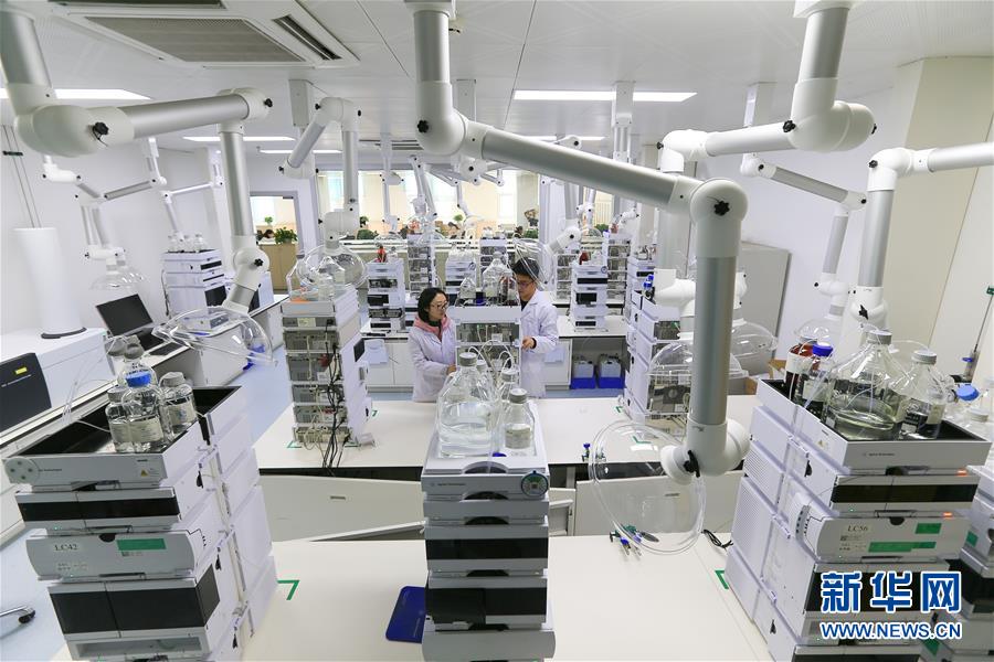 在绿叶制药集团的研发中心,实验人员进行样品分析(11月15日摄)。新华社记者王南摄