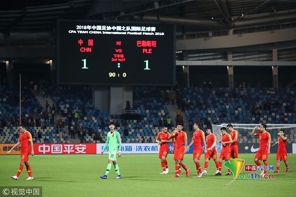 北京时间11月20日,中国国家男子足球队中国男足在海口与来访的巴勒斯坦队进行了一场友谊赛。开场不久后卫冯潇霆为国足率先破门,然后国足接二连三浪费扩大比分机会!到了下半场,巴勒斯坦队进攻威胁性明显提升,并在第63分钟扳平比分,最终双方1-1握手言和。
