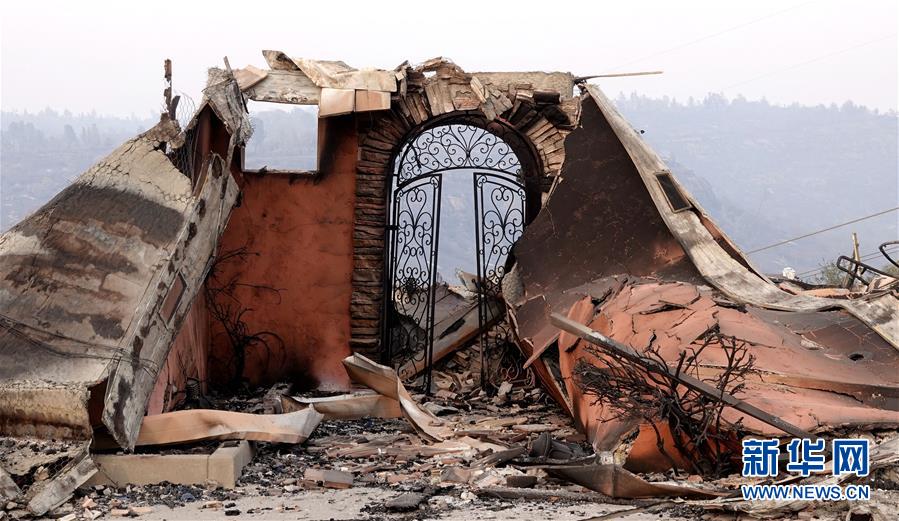 这是11月20日在美国加利福尼亚州比尤特县天堂镇拍摄的山火废墟。