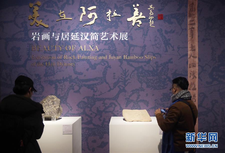 当日,“美在阿拉善——岩画与居延汉简艺术展”在北京中国美术馆开幕,共展出岩画实物、雕塑、拓片、汉简等共计100多件。 新华社记者 鲁鹏 摄