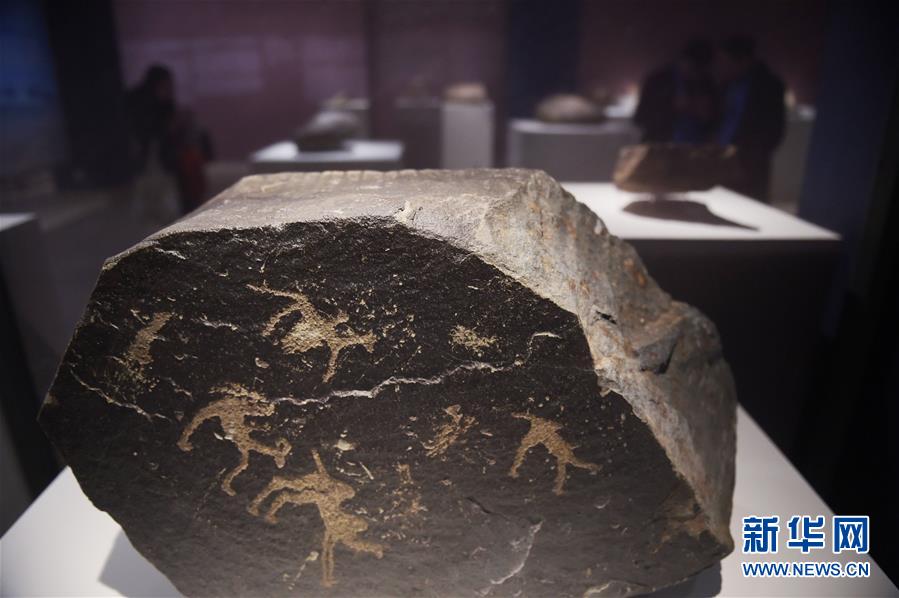 这是在中国美术馆展出的展品“西夏骑者与骆驼岩画”(11月21日摄)。新华社记者 鲁鹏 摄