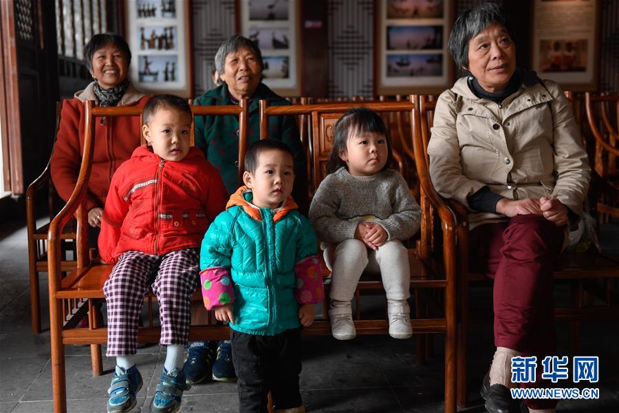 11月20日,在浙江海宁市南关厢历史街区,人们在观看皮影戏表演。新华社记者黄宗治摄