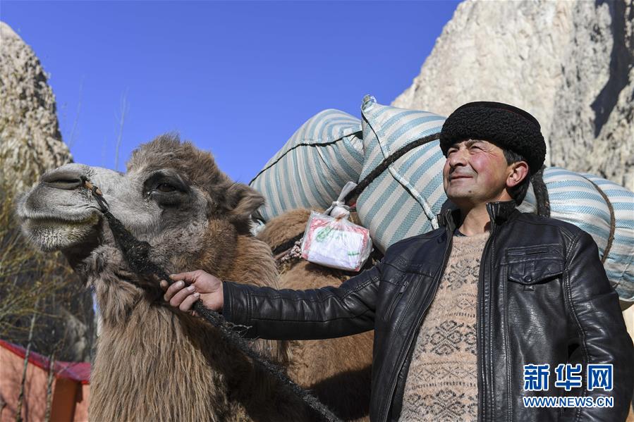 都热一家居住在大同乡阿克托尕栏杆村一组,这里距离乡政府驻地有20多公里,部分路段至今仍无法通车。搬迁时,都热需要先借助骆驼运送行李,步行约一个小时到达村委会附近,然后再乘车前往200多公里外的塔提库力易地扶贫搬迁安置点。47岁的都热与妻子商议,先由他带着行李前往县城附近的安置点,收拾新居;妻子则暂时留在家中照顾老人,看管牛羊。