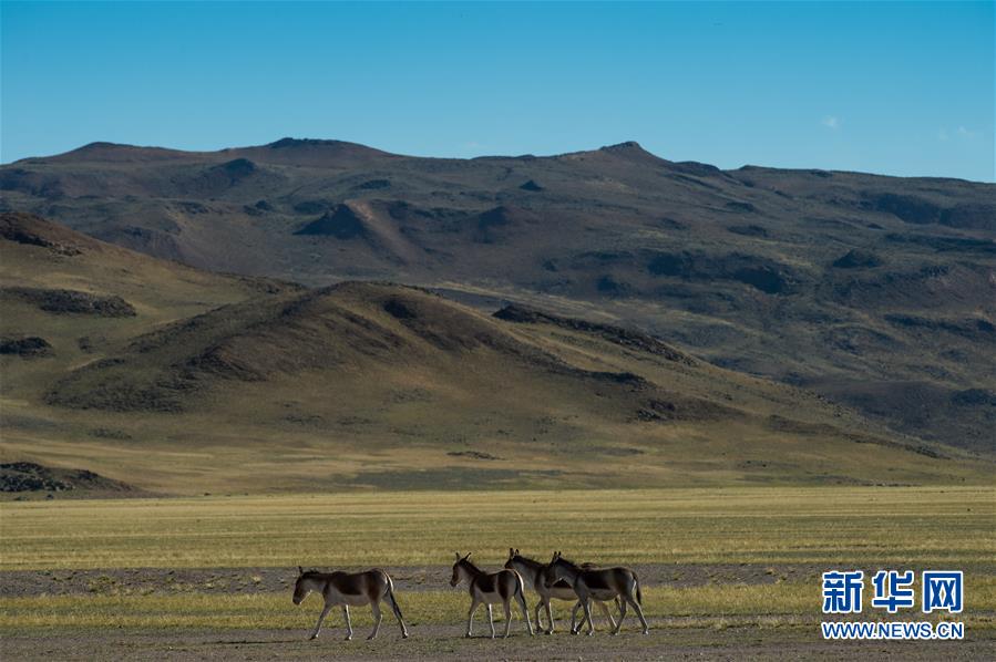 在西藏阿里地区境内拍摄的国家一级保护动物藏野驴(9月19日摄)。 阿里地处西藏西部,平均海拔4500米以上,面积30多万平方公里,羌塘国家级自然保护区几乎涵盖整个阿里地区,是众多野生动物生活的乐园。 新华社记者 旦增尼玛曲珠 摄