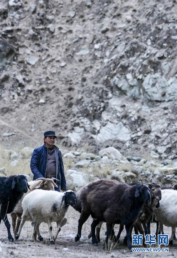 在塔什库尔干塔吉克自治县大同乡阿克托尕栏杆村一组,都热·加尔曼赶着羊群回家(11月16日摄)。新华社记者胡虎虎摄