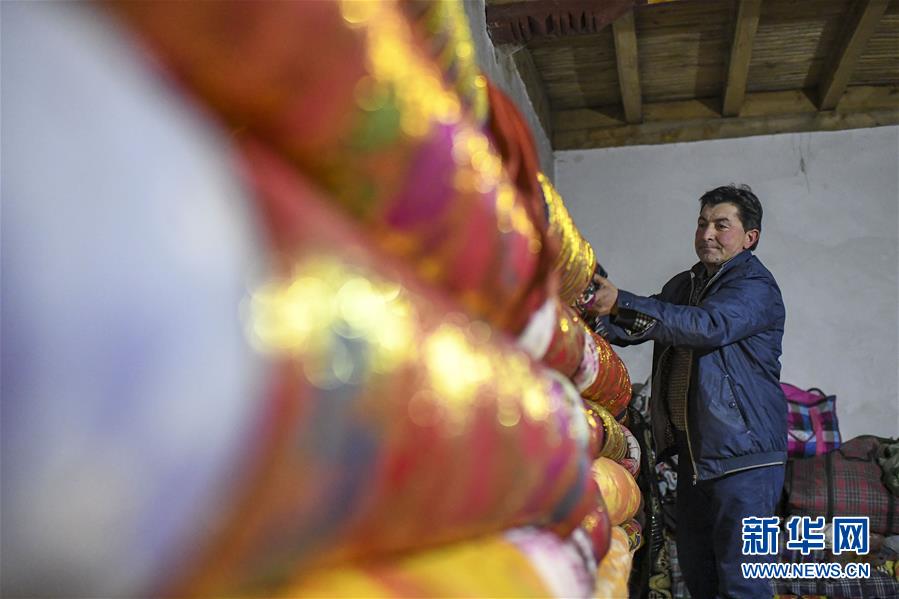 在塔什库尔干塔吉克自治县大同乡阿克托尕栏杆村一组都热的旧居中,都热·加尔曼在出发前一天夜晚检查搬迁物品,看有无遗漏(11月16日摄)。新华社记者胡虎虎摄