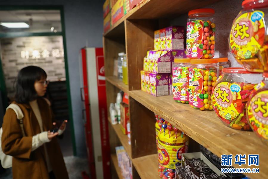 11月23日,一位参观者在“杂货铺”内参观。新华社记者张玉薇摄