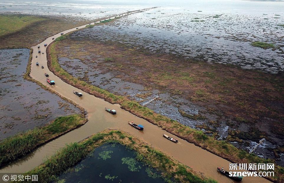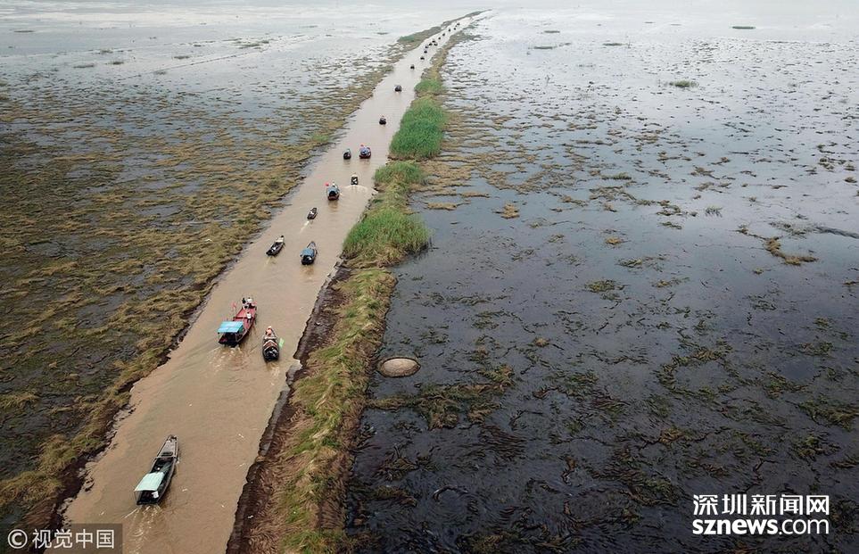 2018年6月20日,江西省南昌市新建区南矶乡南山码头的渔民们纷纷开船入湖捕鱼。当日中午12时,中国最大淡水湖鄱阳湖结束了为期三个月的春季禁渔期,迎来了“开湖日”。从2002年起,鄱阳湖开始实行全湖范围禁渔制度,在每年3月20日12时至6月20日12时的禁渔期内,禁止所有捕捞作业。