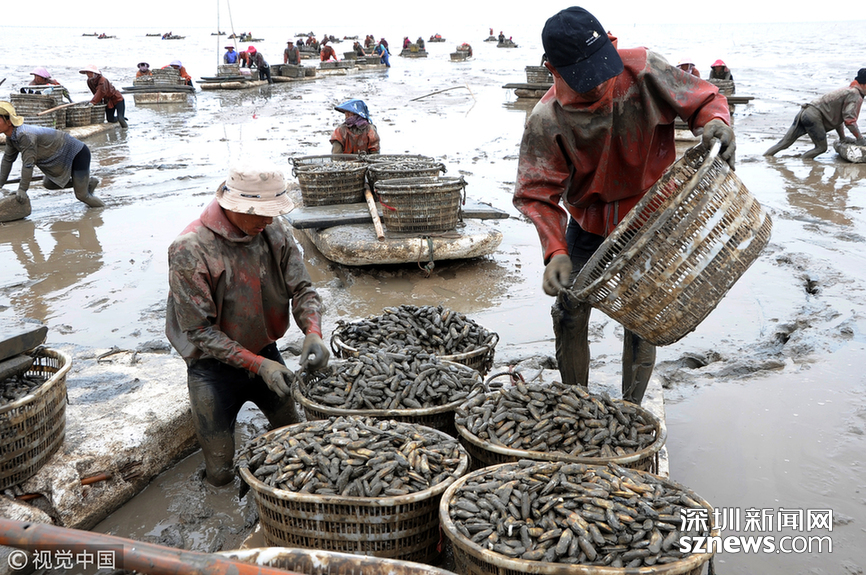开捕以来,渔民早出晚归,每条渔船可以捕获毛刀鱼数百公斤,当晚,即可回港交易,客商进行收购后打包装车,连夜发往各地。目前市场上晾晒好的毛刀鱼每公斤可卖25到30元。