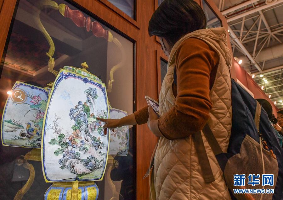 11月23日,观众正在操作3D虚拟文物的互动展示。新华社记者李贺摄