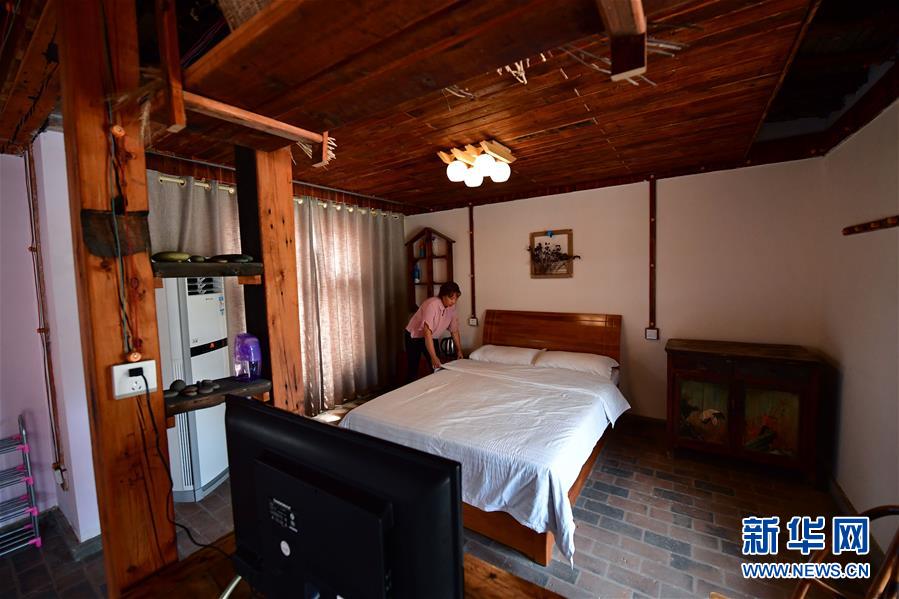 在河南兰考县东坝头乡张庄村,游文超的儿媳正在游家小院里打理民宿(6月21日摄)。新华社记者冯大鹏摄