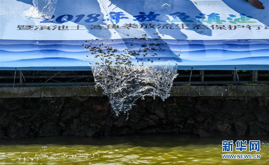 11月23日,滇池土著鱼种被投放至湖中。新华社记者江文耀摄