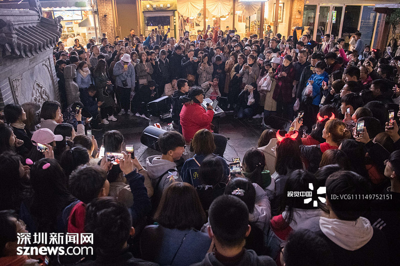 2018年4月6日晚,清明小长假的第二天,在山东省济南市复古老街区宽厚里,暂停演出有段时日的网红歌唱组合“连音社”悄然复出,吸引了当地以及来自全国各地游客的围观。