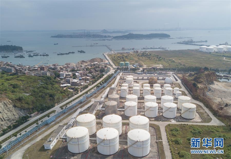 这是泉港裂解碳九泄漏事故涉事企业东港石化公司厂区,远处为事发码头(11月6日无人机拍摄)。新华社记者 宋为伟 摄