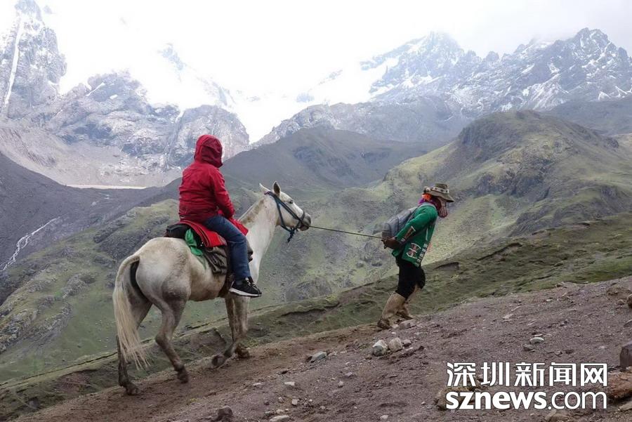 观赏彩虹山十分辛苦。住在库斯科的游客一般需要于凌晨三、四点钟出发,经过两小时柏油路上行车和途中早餐,再沿崎岖山路颠簸三小时,九点至十点抵达彩虹山大本营,然后开始登山。李仁奇摄
