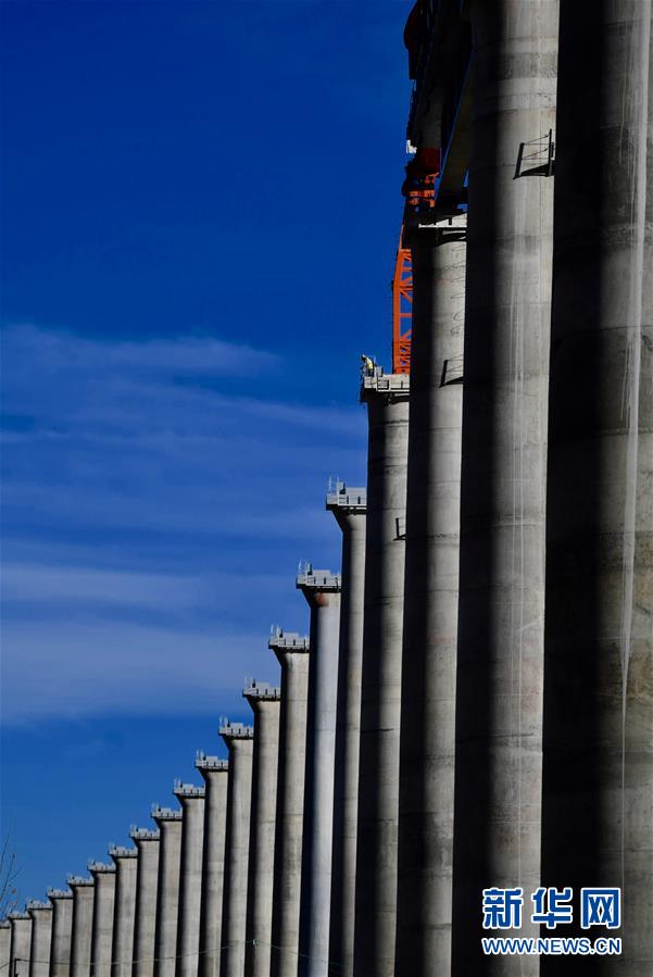 11月26日,施工人员在川藏铁路拉林段贡嘎雅鲁藏布江特大桥上铺轨。 新华社记者 觉果 摄
