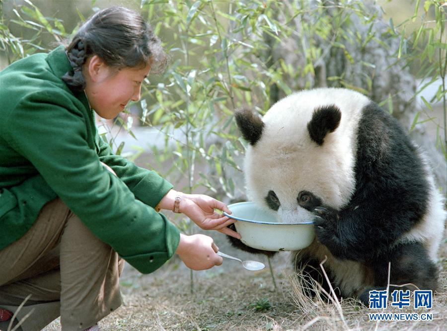 新华社记者金勖琪1980年拍摄的饲养员给即将送往德国的大熊猫“宝宝”喂牛奶。大熊猫,古老的物种,世界级“萌宠”。有一位84岁的老人,四十年前曾身挎相机与熊猫亲密接触六年多,公开发表了一千多张熊猫照片,把熊猫介绍给全球的读者,被国内外的朋友亲切地称为“熊猫小姐”。她就是金勖琪,新华社第一代熊猫摄影师。新华社记者 张超群 摄