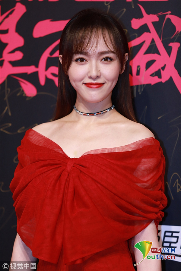 11月28日,上海,唐嫣出席活动,她身穿红色轻纱短裙露迷人香肩知性温婉,胸前蝴蝶结点缀尽显俏皮。