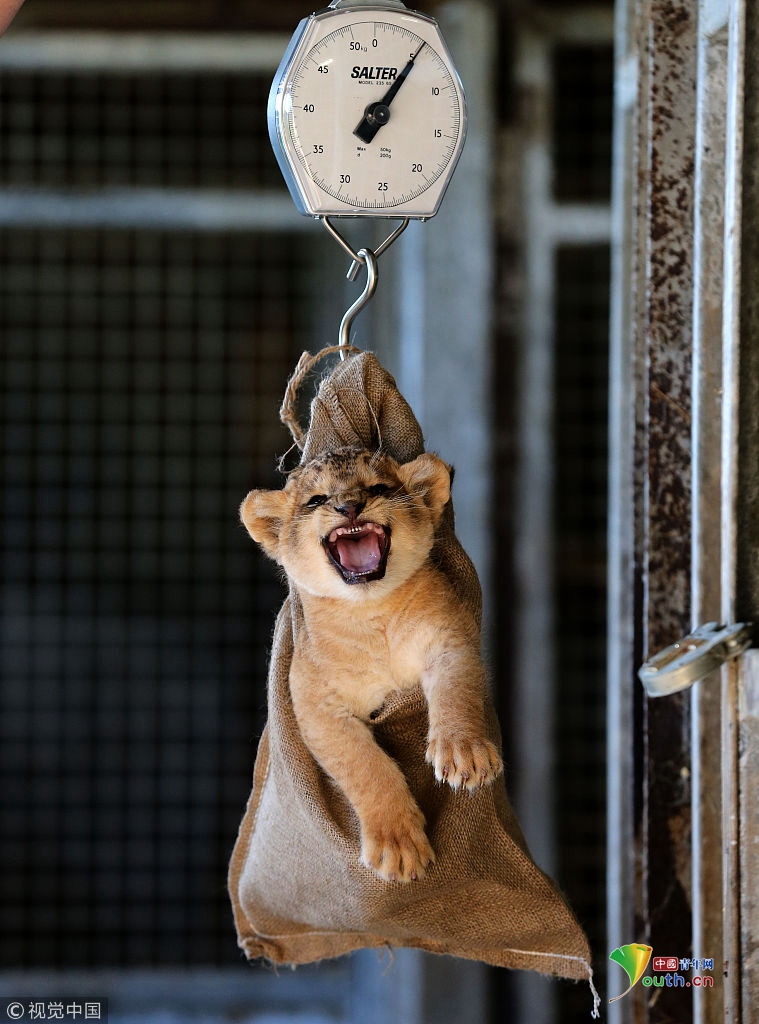 中国青年网北京11月29日电《我快要窒息了。。》2016年7月28日讯,英国斯特灵,布莱尔德拉蒙德野生动物园四只三周大的幼狮接受首次健康检查。