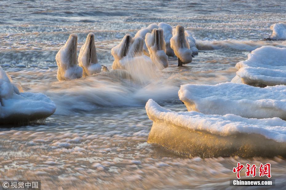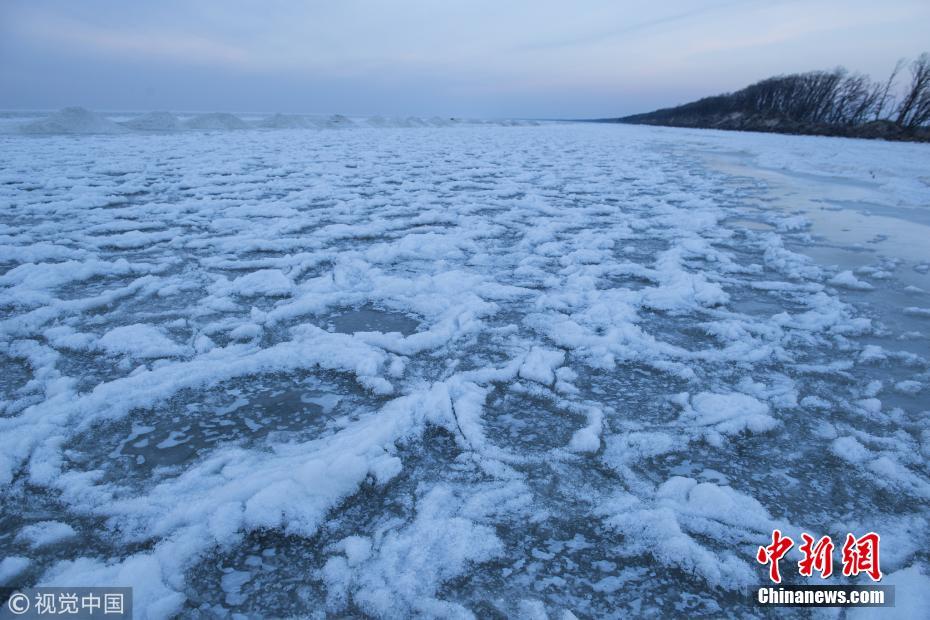 11月24日下午,摄影师在进入冬季黑龙江东南部中俄界湖兴凯湖看到,浩瀚千里的湖面不再波涛汹涌,小兴凯湖蔚蓝犹如平镜,大兴凯湖银白无限。走到冰封的湖面近处观看,封冻的大湖湖面犹如浪花被凝固,千姿百态。据岸边渔民介绍,今年大湖属于“武封”,是由于气温突然下降造成的,这也是少有的现象,和往年的“文封”形成的大冰块区别很大。孙长山 摄 图片来源:视觉中国