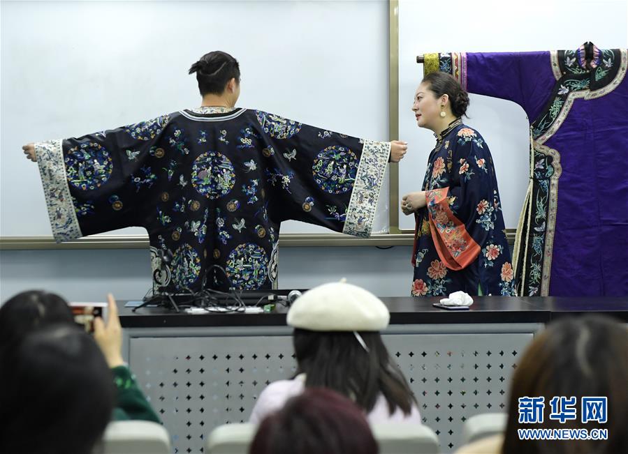 当日,一场别开生面的清代古典服装课在北京服装学院举行。古典美衣收藏家、服装设计师毕红携带她珍藏的清代女性传统服装精品来到北京服装学院与师生见面。
