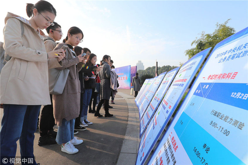 2018年12月2日,湖北武汉一公务员考点,密密麻麻的考生进向考场。当日,2019年度中央机关及其直属机构公务员招考笔试开考。楚林/视觉中国