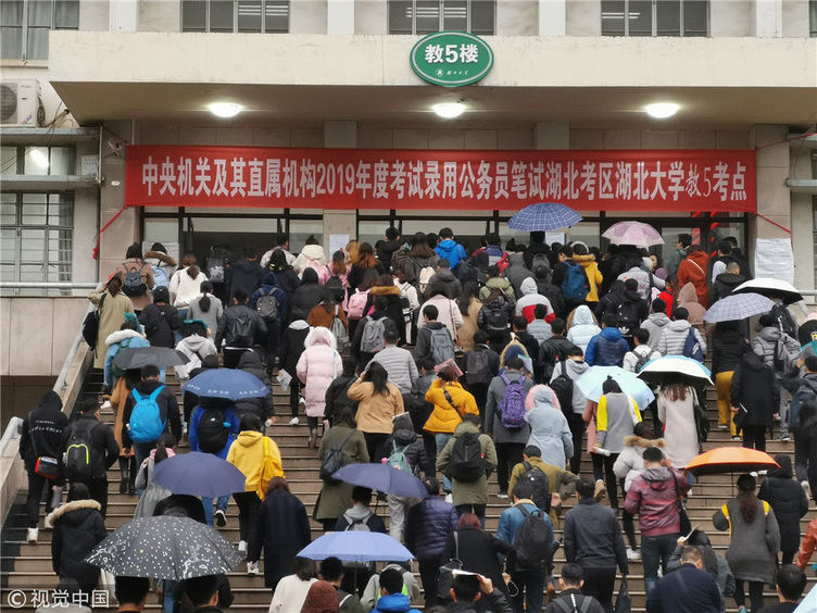 2018年12月2日,湖北武汉一公务员考点,密密麻麻的考生进向考场。当日,2019年度中央机关及其直属机构公务员招考笔试开考。楚林/视觉中国