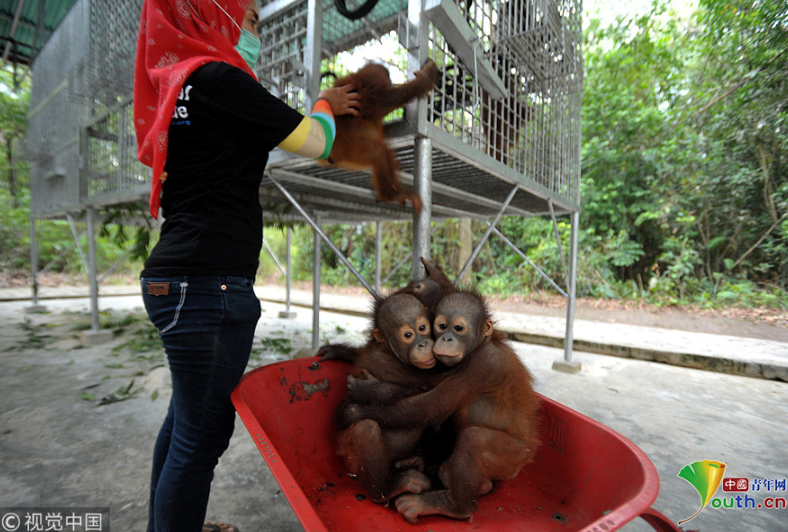 猩猩宝宝将在学校里学会爬、玩和保护自己,最后它们会被放归自然栖息地。图片作者:Newscom